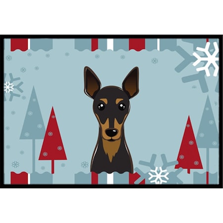 Winter Holiday Min Pin Indoor and Outdoor Mat- 18 x 27 in.