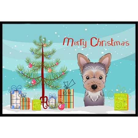 Christmas Tree and Yorkie Puppy Indoor or Outdoor Mat- 18 x 27