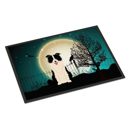 Halloween Scary Border Collie Black White Indoor or Outdoor Mat, 24 x 0.25 x 36 in.