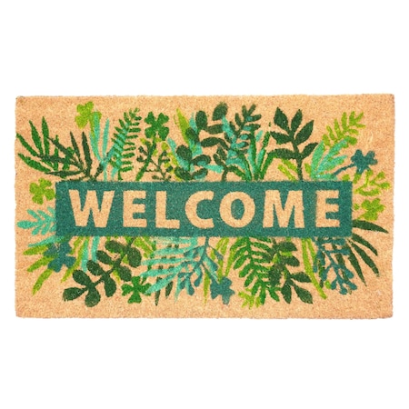 Welcome Palm Tree On Green Indoor and Outdoor Mat- 18 x 27 in.