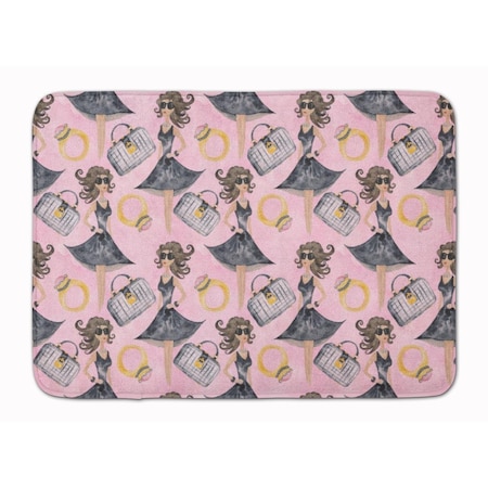 Watercolor Fashion Diva on Pink Machine Washable Memory Foam Mat