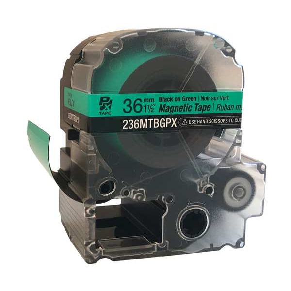 Combined Label and Ribbon Cartridge, Compatible Grainger Part Number 60YR02, 60YR03, 60YR54, 60YR55, 802G10, 802G13, 802G15, Compatible Mfr Part Number LW-PX800, LW-PX900, LW-Z5000PX, LW-Z5010PX, Label Color Green, Label Finish Matte, Label Height 1 1/2 in, Label Material Polyester, Label Width 1 1/2 in, Material Properties Chlorine-Free, Chloroethene-Free, Magnetic, Metal Detectable, Silicone-Free, Ribbon Color Black, Roll Length 4 7/8 ft, Vial/Tube Size Not Applicable