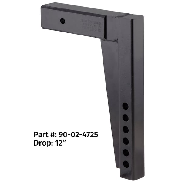 2-1/2 Inch Square; 12 Inch Shank; 12 Inch Overall Length; 15 Inch Rise; 12 Inch Drop; 16000 Pound Gross Trailer Weight Max