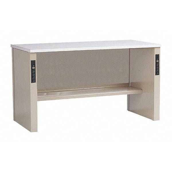 Workbench, Height Adjustability Fixed Height, Top Material Laminate, Assembly Unassembled, Color Beige, Frame Material Steel, Leg Type Pedestal Cabinet Base, Maximum Adjustable Height Not Applicable, Minimum Adjustable Height Not Applicable, Non-Metal Top Thickness 1 1/4 in, Included Components Lower Shelf, Power Strip, Number of Outlets 8, Number of Shelves 1, Overall Depth 30 in, Overall Fixed Height 33 1/2 in, Overall Load Capacity 200 lb, Overall Width 72 in, Standards UL Listed