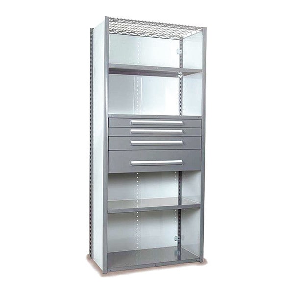 V-Grip Shelving W/ 4Drwrs/5Shlvs 7x1.5x4, Strtr, (2)3", 4.5", 7.5"Drwrs, LG
