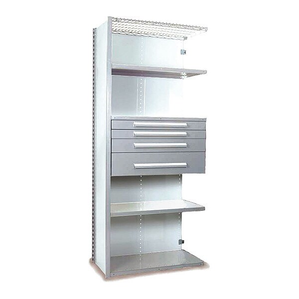 V-Grip Shelving W/ 4Drwrs/5Shlvs 7x2x3, Addon, (2)3", 4.5", 7.5" Drwrs, LG