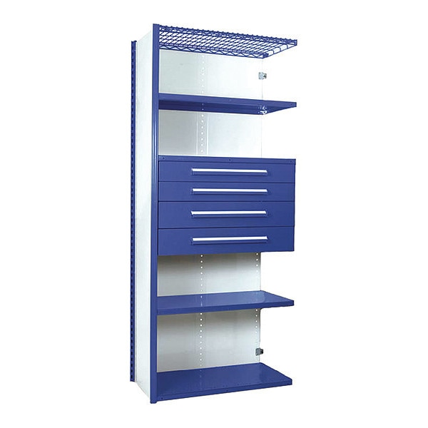V-Grip Shelving W/ 4Drwrs/5Shlvs 7x2x3, AddOn, 3", 4.5", 6", 7.5"Drwrs, BL