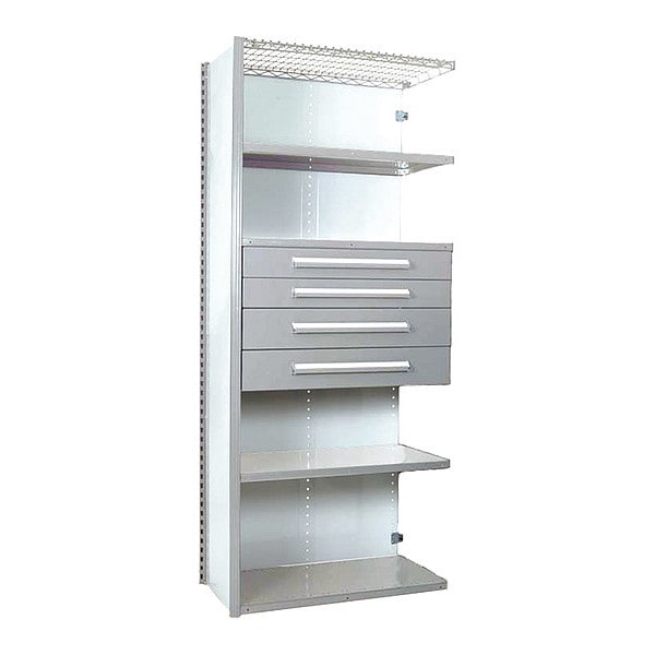 V-Grip Shelving W/ 4Drwrs/5Shlvs 7x2x3, AddOn, 3", 4.5", 6", 7.5"Drwrs, LG