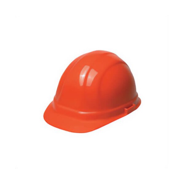ERB hard hat front brim, series: Omega II, fits minimum hat size: 6-1/2, fits maximum hat size: 8, orange, HDPE, 6-point woven nylon suspension, ANSI electrical class rating: class C, E and G, ANSI impact rating: type I, slotted: yes, mega ratchet adjustment.