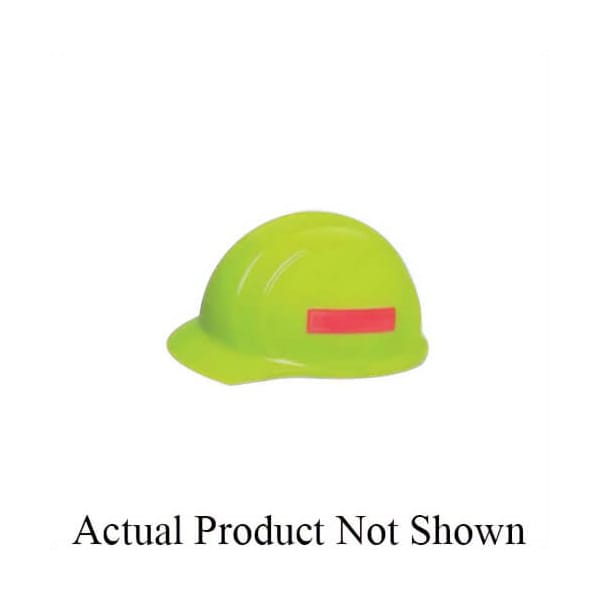 ERB reflective sticker prismatic, 4 in length, 1 in W, fluorescent lime Legend/Background, for use with: hard hat.