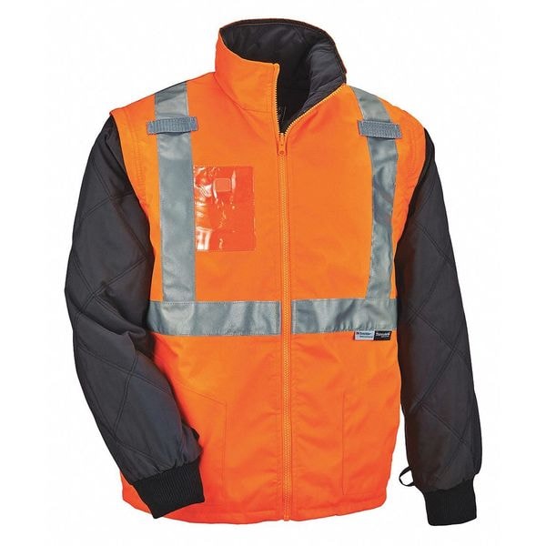 3-in-1 Jacket/Vest, 300D Oxford Polyester, Class 2 Type R, Hi-Viz Orange, M