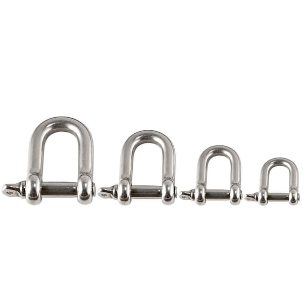 Stainless steel U shaped shackles connect to waisted tools (tapered mid sections) or tools with captive holes, creating clean, secure attachment points for tethering.