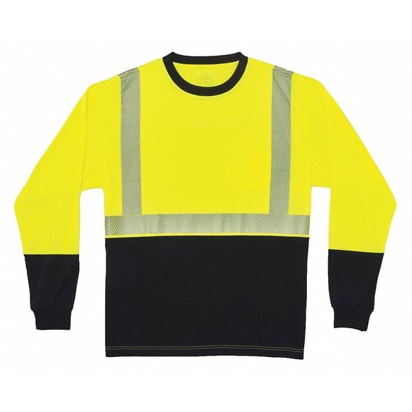 Black Front Perf. Lng Slv Shirt, M, Lime, Polyester, Lime, Black, M