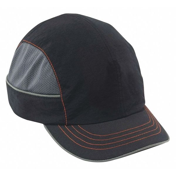 Bump Cap, Short Brim Baseball, ABS, Hook-and-Loop Suspension, Black, Fits Hat Size XL