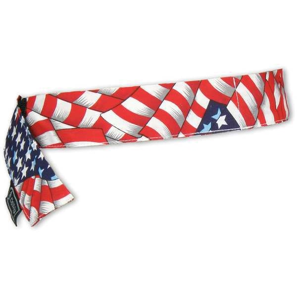 Evaporative Cooling Bandana, Garment Type Head Band, Cooling Yes, Cooling Method Evaporative - Soak, Maximum Cooling Time Up to 4 hours, Closure Type Hook-and-Loop, Material Cotton/PVA, Color Red/White/Blue, Pattern Stars and Stripes, Size Universal, Style Head Protector, Overall Width 2 in, Overall Length 35 1/2 in, Adjustment Type Hook-and-Loop, Features Re-Usable, Series 6705CT