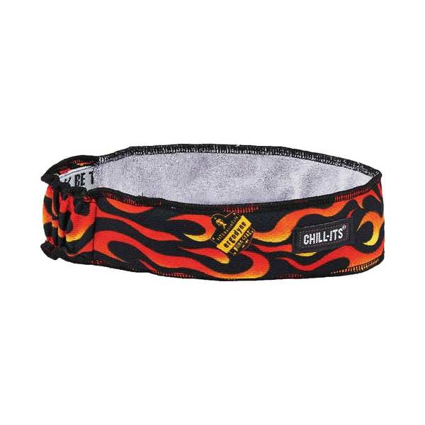 Headband, Garment Type Sweatband, Cooling Yes, Cooling Method Evaporative - Soak, Closure Type Elastic Tie Band, Material Terry Cloth, Color Black/Orange, Pattern Flames, Size Universal, Style Head Protector, Overall Width 2 in, Overall Length 20 in, Adjustment Type Elastic, Cleaning and Care Instructions Machine Wash, Features Low-Profile, Workday to Weekend, Moisture-Wicking Yes, Series 6605