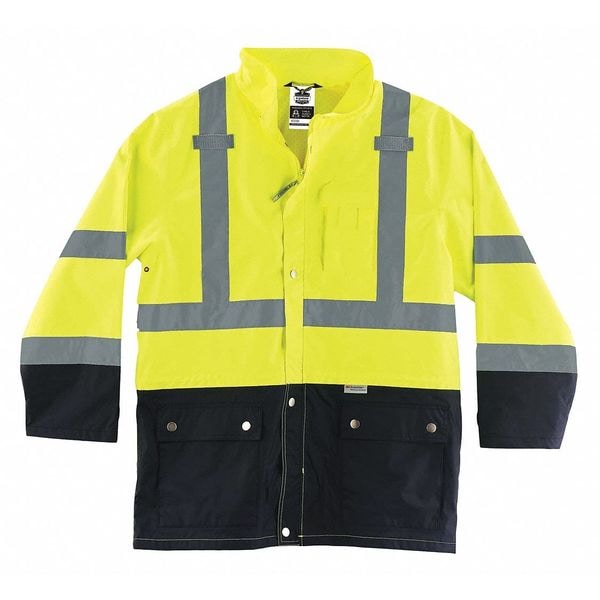 Hi-Vis Rain Jacket, Polyester/Polyurethane Coating, Class 3 Type R, Lime/Black, S