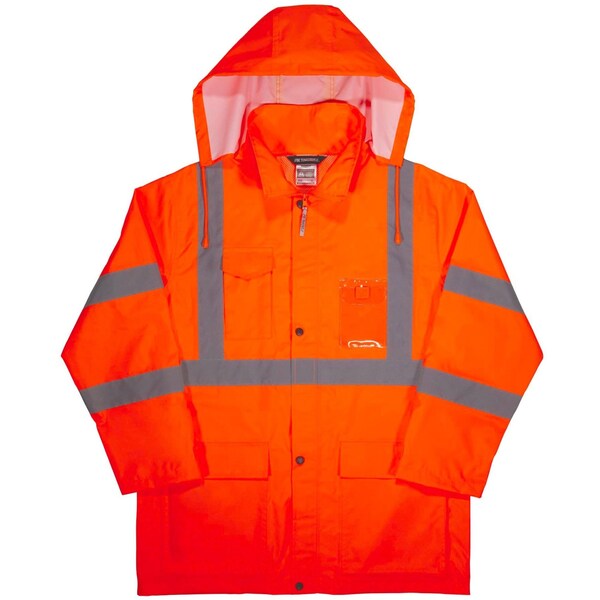 Hi-Vis Rain Jacket, Polyurethane, 150D Oxford Polyester, Class 3 Type R, Orange, 3XL