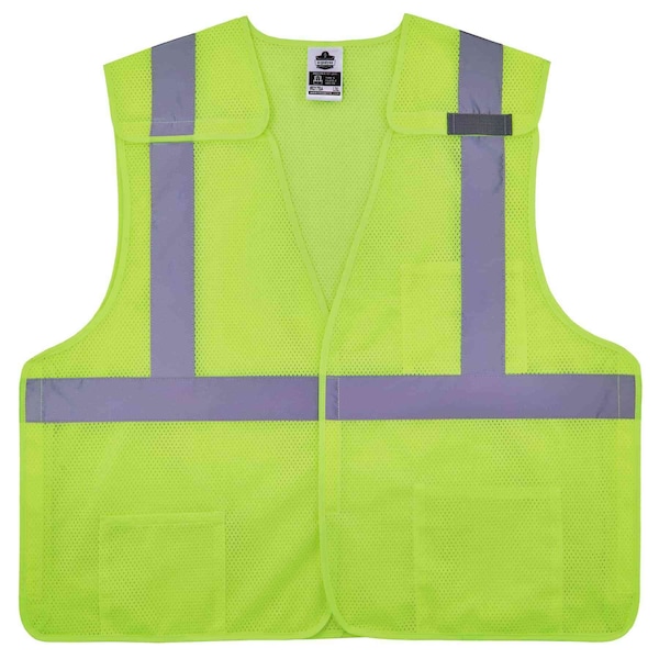 Lime Breakaway Hi-Vis Class 2 Vest, 2XL/, Polyester Mesh, Hook & Loop Closure, 1 Outside Pockets