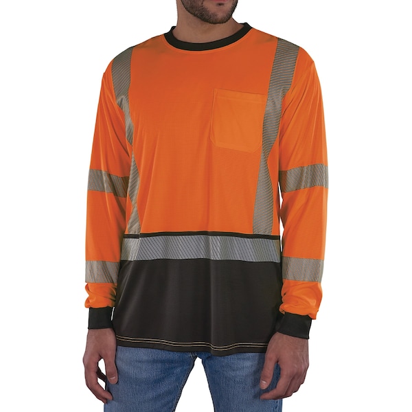 M Orange Class 3 Hi-Vis Long Sleeve Shirt Black Bottom