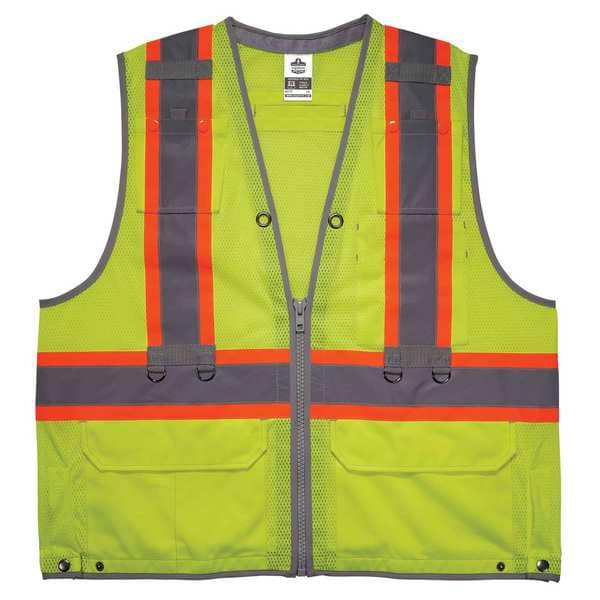 Tool Tethering Safety Vest, ANSI Class 2, Vest Size M, S, Gender Unisex, Back Stripe Pattern U, Number of Pockets with Closure 2, Features 20+ Tethering Points, (5) Pockets, Hi-Visibility, Reflective, Standards ANSI/ISEA 107, ANSI/ISEA 121