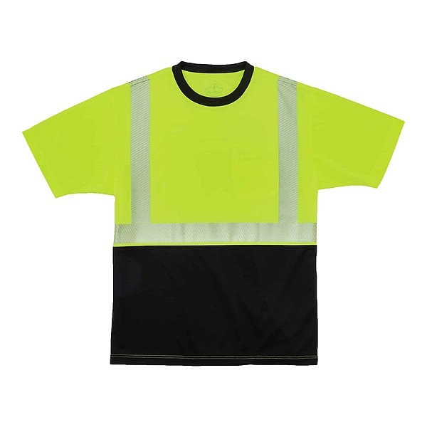 Shirt, Gender Unisex, ANSI Class 2, Shirt Style T-Shirt, Back Stripe Pattern U, Material Polyester, Number of Outside Pockets 1, Front Closure Type None, Collar Style Lay Flat, Color Lime, Size 2XS, Size-Body Type Regular, Fabric Weight 4.1 oz, Reflective Tape Type Glass Bead, Reflective Stripe Border Type None, Garment Features Black Bottom, Standards ANSI/ISEA 107-2020, Sleeve Type Short, Maximum Chest Size 39 in, ANSI Type R, Features Black Front and Collar Hide Dirt and Wear, Under Arm Vents