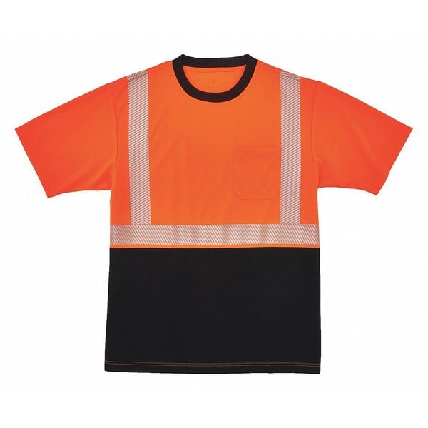 Short Sleeve Hi-Vis Black Bottom T-Shirt, Class 2, Polyester Breathable Knit, Orange/Black, M