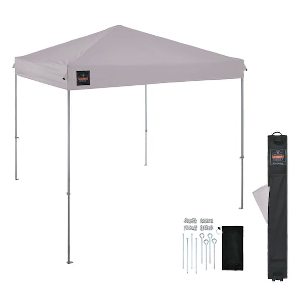 The SHAX 6001 Lightweight Pop-Up Tent is a durable 10ft x 10ft // 3m x 3m shelter providing instant relief from the sun, wind and rain. Built with a powder-coated steel frame and pull-pin slider legs for easy set up, this construction tent adjusts to three different heights ranging from 9.3ft - 10ft // 2.8m - 3m. Made with high quality 210D polyester material, the 10ft x 10ft canopy also boasts a waterproofing polyurethane coating (PU) and UV treatments, as well as reinforced corners to withstand tough conditions. The hi-vis lime option provides increased visibility on busy job sites or at events and the silver coating reflects heat keeping the area underneath cooler. A convenient wheeled bag is included for easy storage and transport, along with four ground stakes and four ropes that can be used for added stability. Approximate total weight is 38lbs // 17.2kg. CUSTOM CANOPY. Rep your company, charity or team with the option to customize the canopy of this 10ft x 10ft Pop-Up Tent with any logo, pattern or slogan. Learn more and request a custom canopy here. This pop-up canopy tent is primarily designed to be a place of rest and shade for workers in high heat and direct sunlight conditions but can be also used for sporting events or outdoor get-togethers that need protection from the sun and rain.