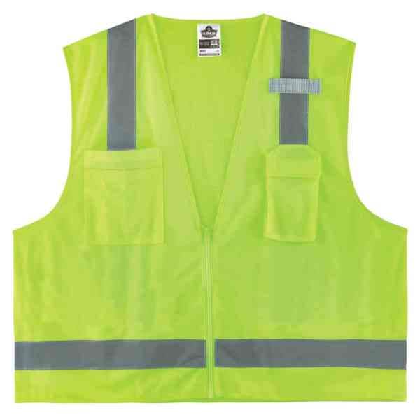 Surveyors Vest, Polyester, Zipper Closure, 2 Outside Pockets, Lime, Size 2XL/3XL