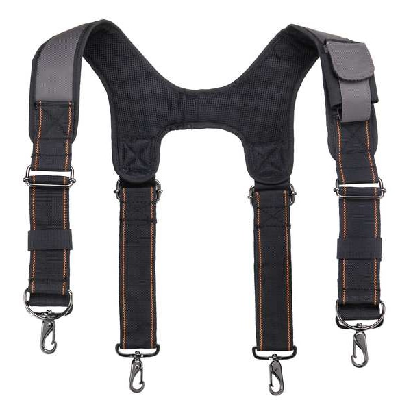 Tool Belt Suspenders, Adjustment Type Snap Hook, Color Gray, Features Cell Phone Holder, Gel Inserts, Quick Adjust Suspenders, Vented Foam Padding, For Use With Belts, Includes Suspenders, Includes Cell Phone Holder Cell Phone Holder Included, Includes Suspender Chest Retaining Strap Chest Retaining Strap Not Included, Material Polyester, Number of Bite Clips Not Applicable, Number of Pockets 1, Number of Snap Hooks 4, Overall Length 3 in, Overall Width 13 in, Padded Padded