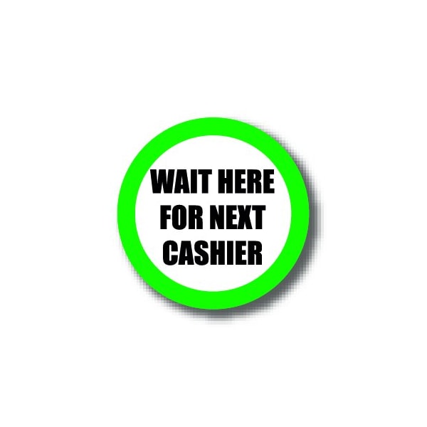 16in CIRCLE SIGNS - Wait Here For Next Cashier