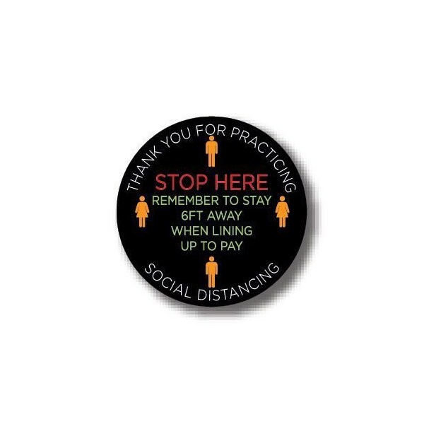 4in CIRCLE SIGNS Stop Here Remember To Stay 6FT Away When Lining Up to Pay