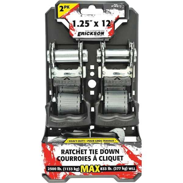 1-1/4'' x 12 Ft. 833 Lb. Heavy-Duty Ratchet Tie-Down Strap, 2PK