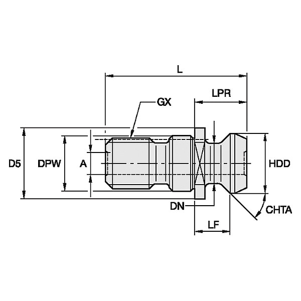 Retention Knob, Style Designation B, Taper Size 40, Thread Size M16, Angle Radius 45 Degrees , Knob Outside Dia. 18.80mm, Coolant Fed Coolant Through, Features Piloted
