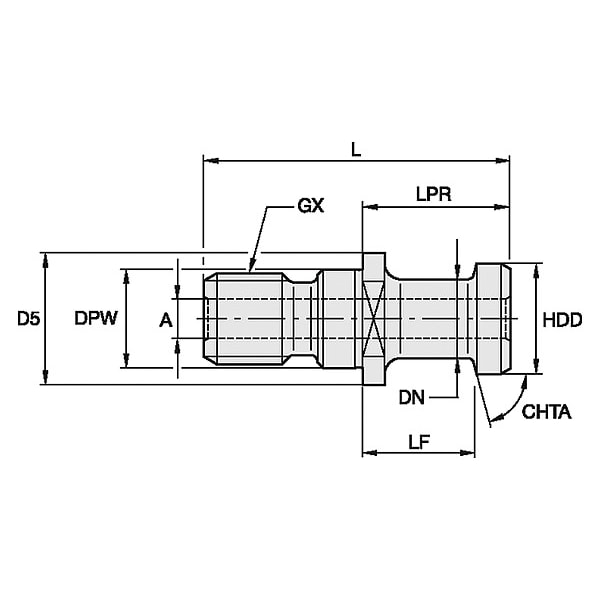 Retention Knob, Style Designation A, Taper Size 50, Thread Size M24, Angle Radius 75 Degrees , Knob Outside Dia. 27.95mm, Coolant Fed Coolant Through, Features Piloted