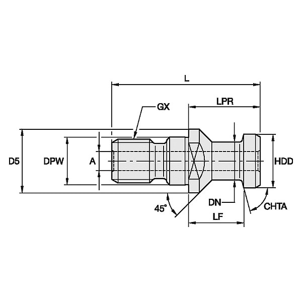 Retention Knob, Style Designation A, Taper Size DV50, Thread Size M24, Angle Radius 75 Degrees , Knob Outside Dia. 27.97mm, Coolant Fed Coolant Through, Features Piloted