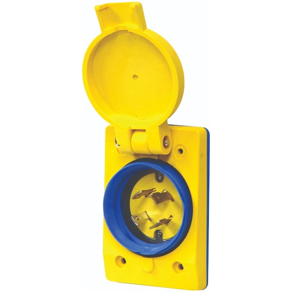 Locking Inlet, 20 A, 125V AC, Single Phase, 2 Pole, Yellow