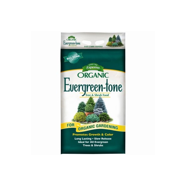 18 lb. 4-3-4 Evergreen Tone plant food. All natural formula enhanced with Bio-Tone our proprietary blend of beneficial microbes to ensure superior plant growth. For all evergreen trees and shrubs.