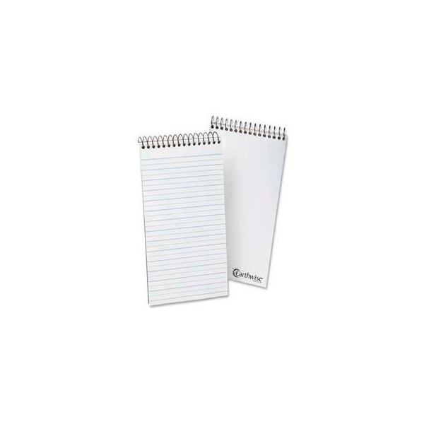 Esselte earthwise recycled reporter's notebook, 4" x 8", white, 70 sheets/pad reporter's notebook fits in a pocket or purse. Wirelock binding at top secures the wire ends to prevent snagging. Heavy chipboard front protects your notes and offers convenient writing support. Notebook contains 70 white sheets of 15 lb. Paper. Each sheet is ruled and micro perforated for easy removal. larger quantity quotes available. Please call 1-888-978-7759. this product arrives to most customers in 2-3 business days.