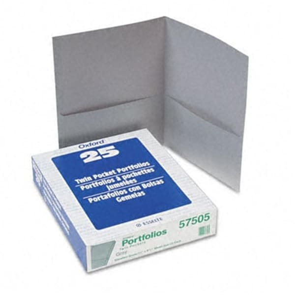 Esselte Pendaflex Twin-Pocket Portfolio Embossed Leather Grain Paper Gray
