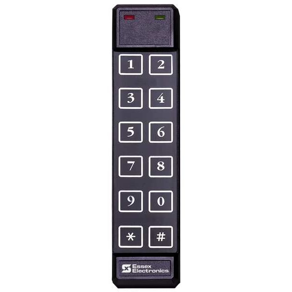 Keyless Access Control Keypad, Access Type Keypad, Interface Stand Alone, Case Material Stainless Steel, Finish Unfinished, Height 7 1/8 in, Width 1 3/4 in, Depth 3/4 in, Number of Keys 0, Timed Entry Allowance 1 to 99 sec, Power Required 12 to 24 V DC, 5 V DC, Operating Temp. Range -40 Degrees to 70 Degrees C, Max. User Codes 500, Max. Proximity Range Not Applicable, Standards Not Applicable, Weather Resistant Yes