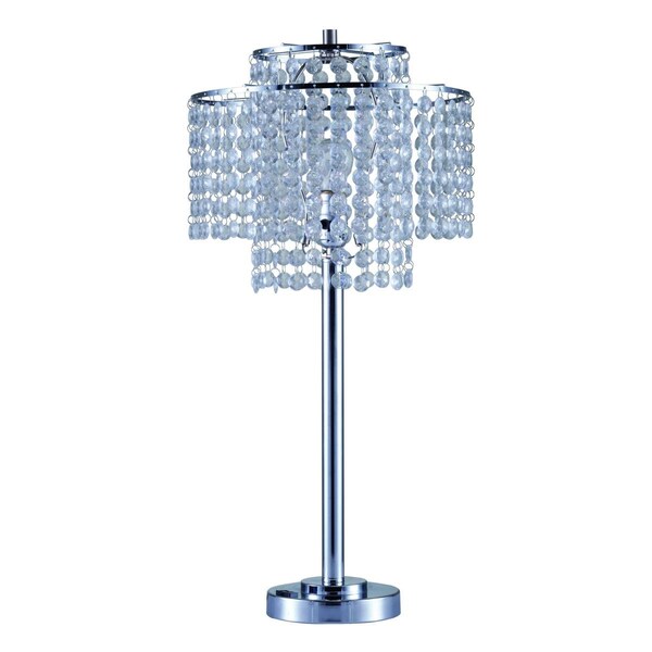 26 in. Glam Two Tier Chandelier USB Table Lamp, Silver