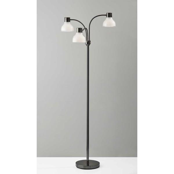 Adjustable Three Light Floor Lamp in Black Nickel with Frosted Inner Shades