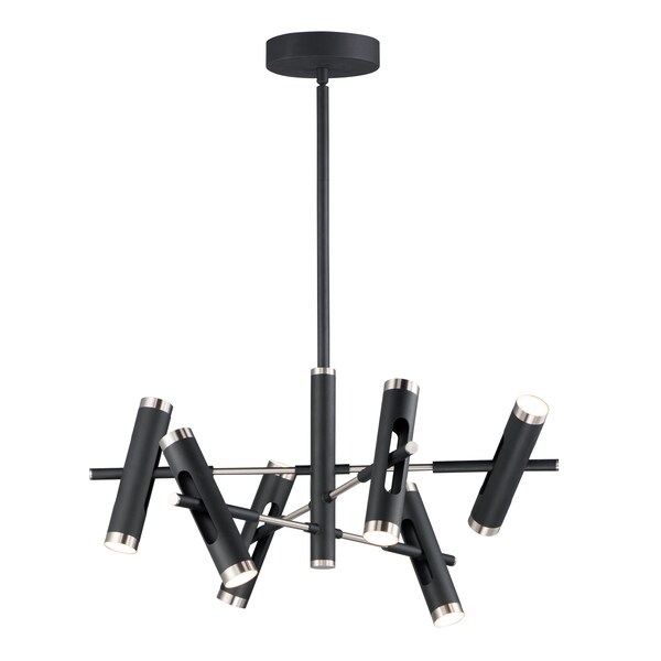 Adjustable cylinders pivots on axis with light emitting from both the top and the bottom for even illumination throughout the room. Finished in Black with a contrasting Satin Nickel trim, this contemporary look is both a dramatic statement as well as functional lighting.
