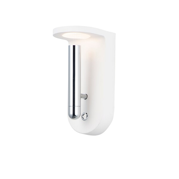 This versatile wall sconce features an adjustable spot controlled by an on-off push button switch which works well bedside. If left in the upright position the light passes through a hole in the cantilevered top which houses colored gels of red, green, blue, or clear for a nice lighting effect