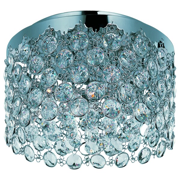 Interlinked bezels of Polished Chrome surround large scale crystal jewels which dazzle with brilliance when illuminated with the Xenon lamps included. Multiple strings of crystal with beveled pendant elegantly trim the inside.