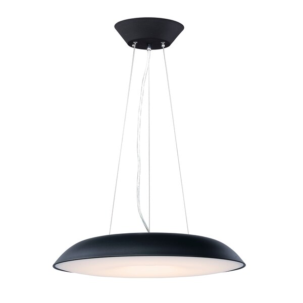 Large scale pendants and ceiling lights finished in Matte Black and diffused through White acrylic are dimpled at the center with a Polished Chrome finial. Very bright and simple design makes this collection suitable for both contemporary and transitional settings.