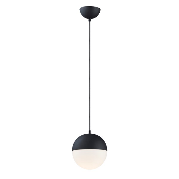 Spun metal semi spheres finished in Satin Nickel, Metallic Gold or Matte Black, cap a Satin White glass shade. Installed into each fixture is an omni-directional LED bulb that evenly illuminates the glass while providing long life operation.