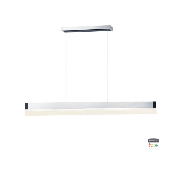 The iBar Friends of Hue collection features aluminum channels anodized in your choice of Brushed Aluminum or Brushed Black. The pendants support a solid block of Clear acrylic which creates a dramatic lighting effect. Entertain with 96 million color combinations or enjoy the health benefits of a regularly changing color temperature to suit the mood of the day. With Philips Hue technology, you can program a variety of themes for the ultimate in convenience, health, security, and entertainment.