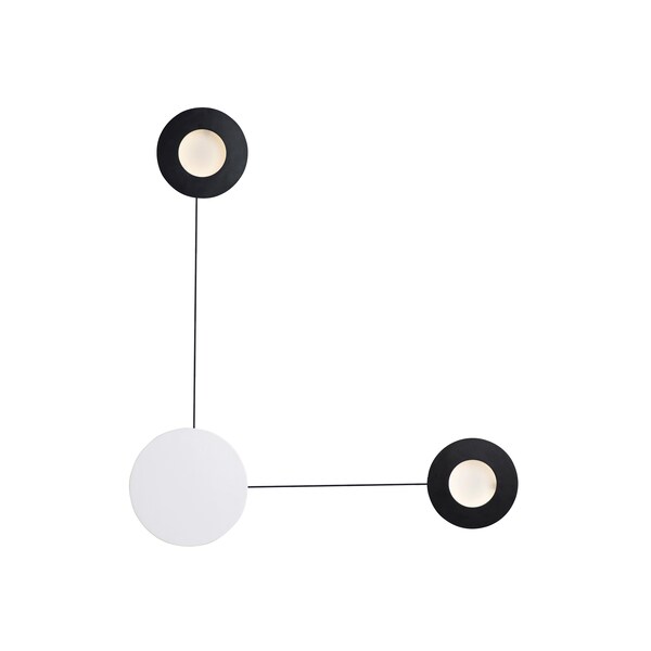 A creative way to add light to any room, this collection can be arranged into many configurations. Simply install the main canopy and position the Moons to your desired location within 3 feet from the center. Each Moon is finished in White on the backside and Black on the face. The face can move from side to side as well in an outward direction.